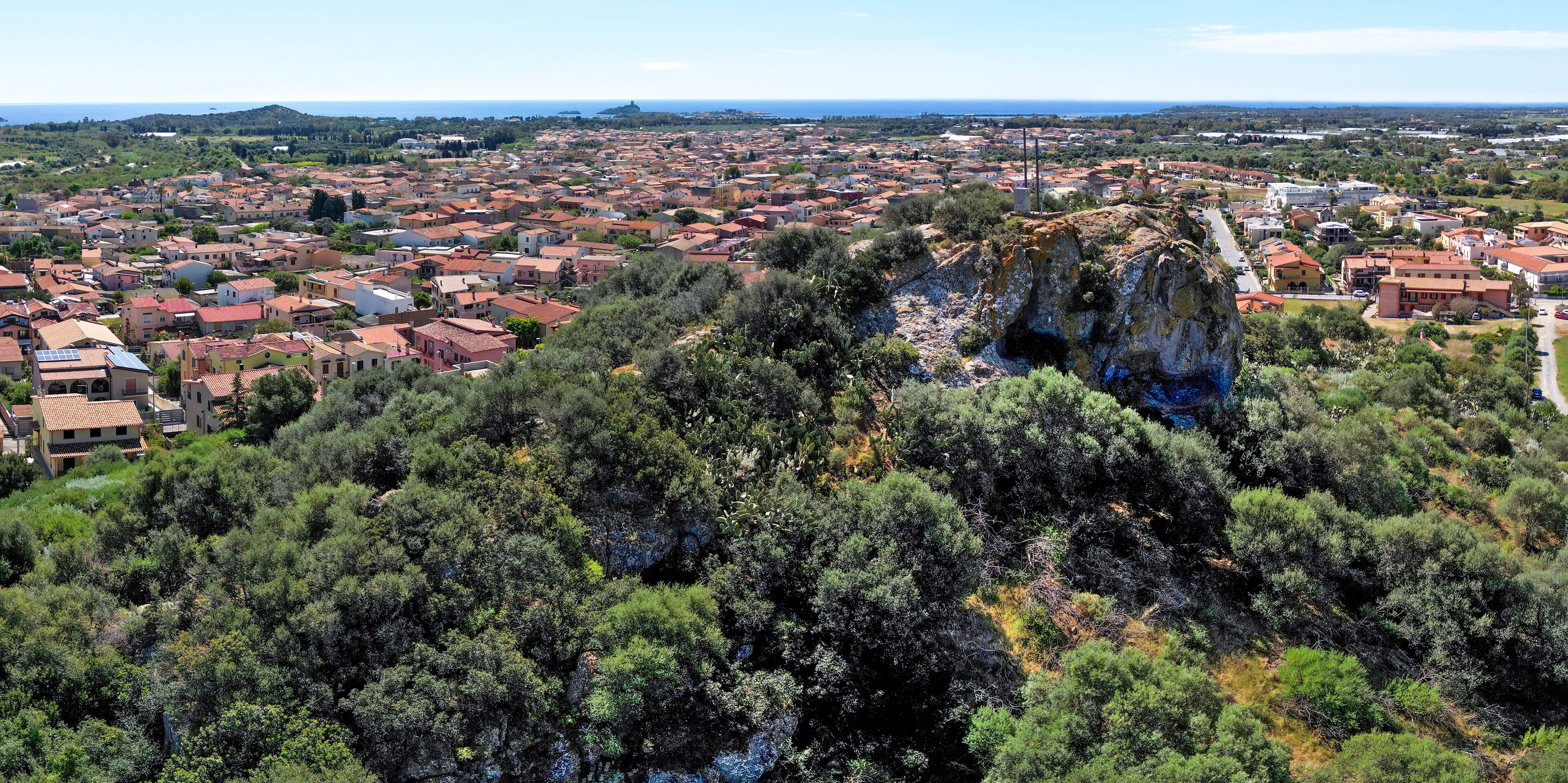 Il sito in questione si trova nella periferia settentrionale del centro abitato di Pula, sulla cima di un piccolo colle di origine vulcanica (65 metri s.l.m.).
