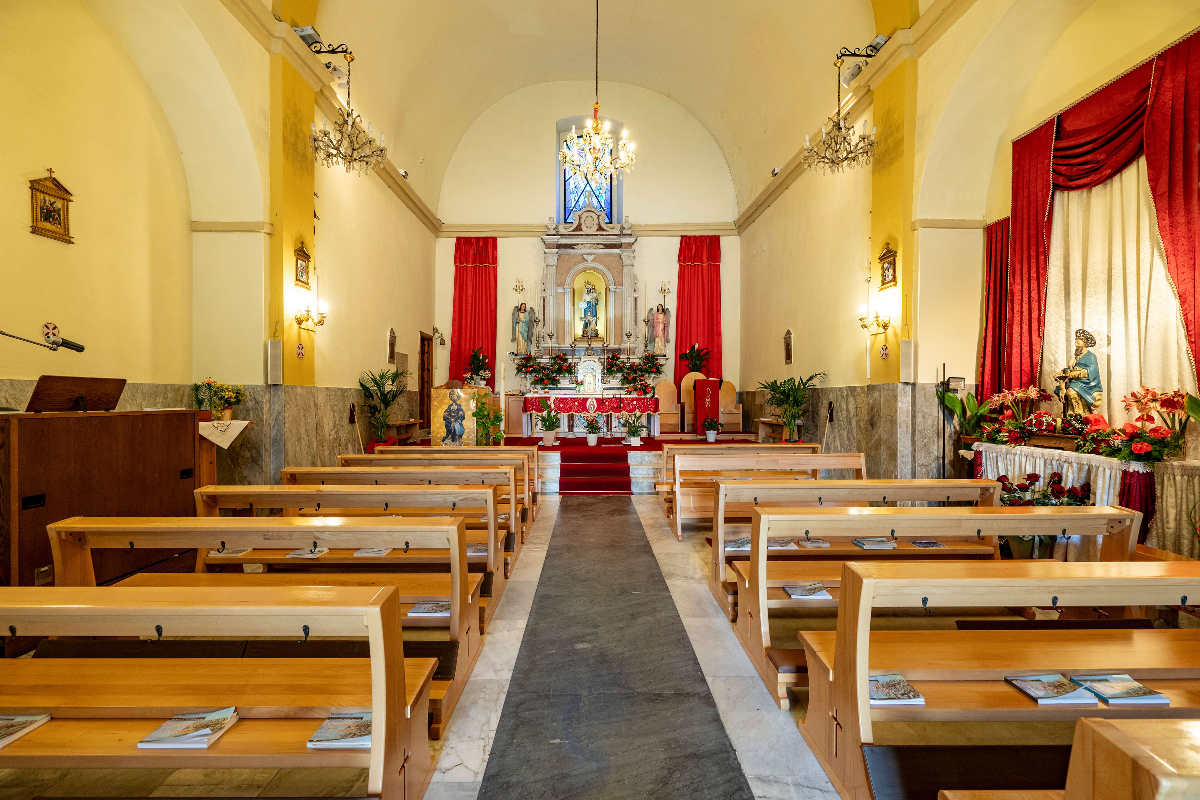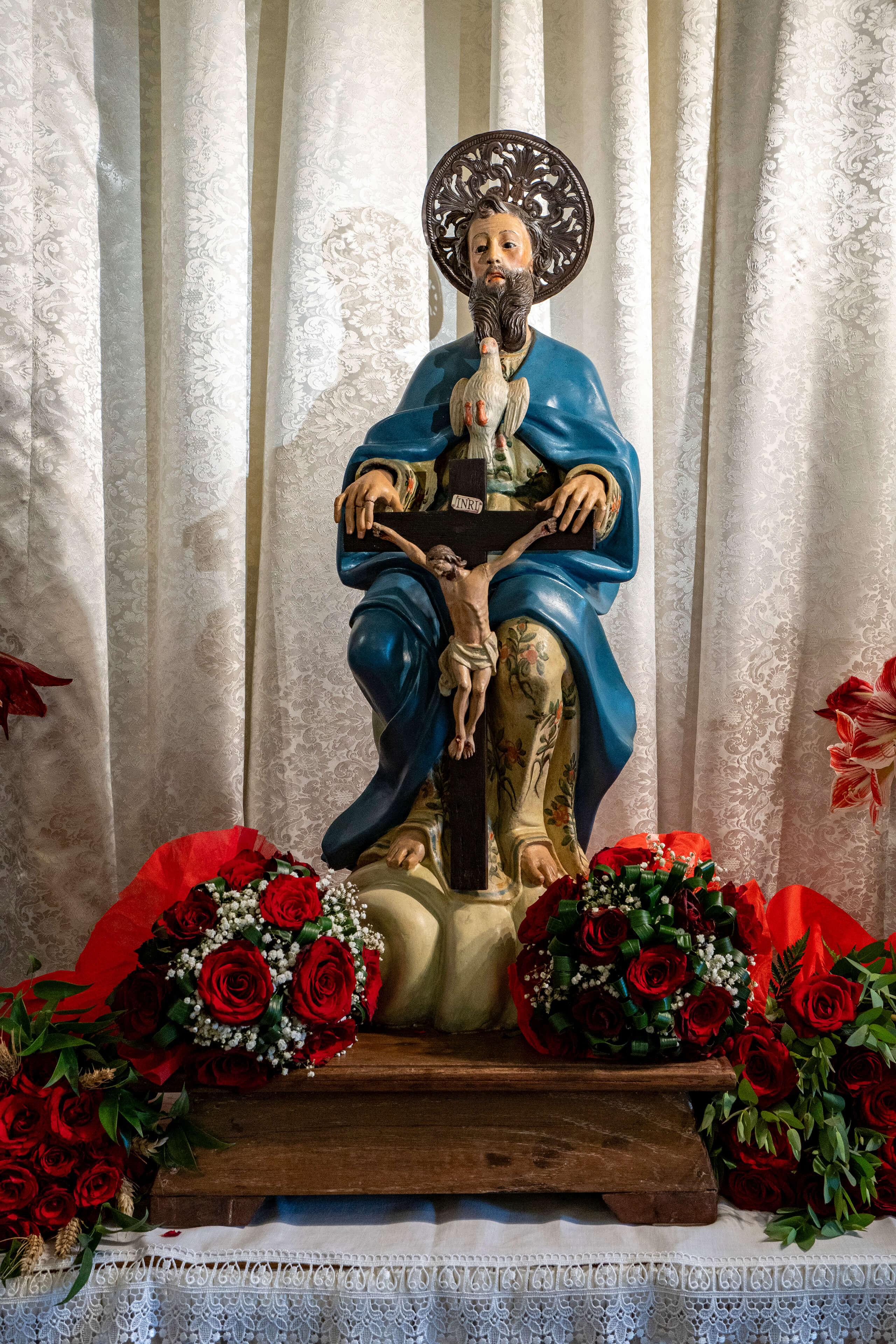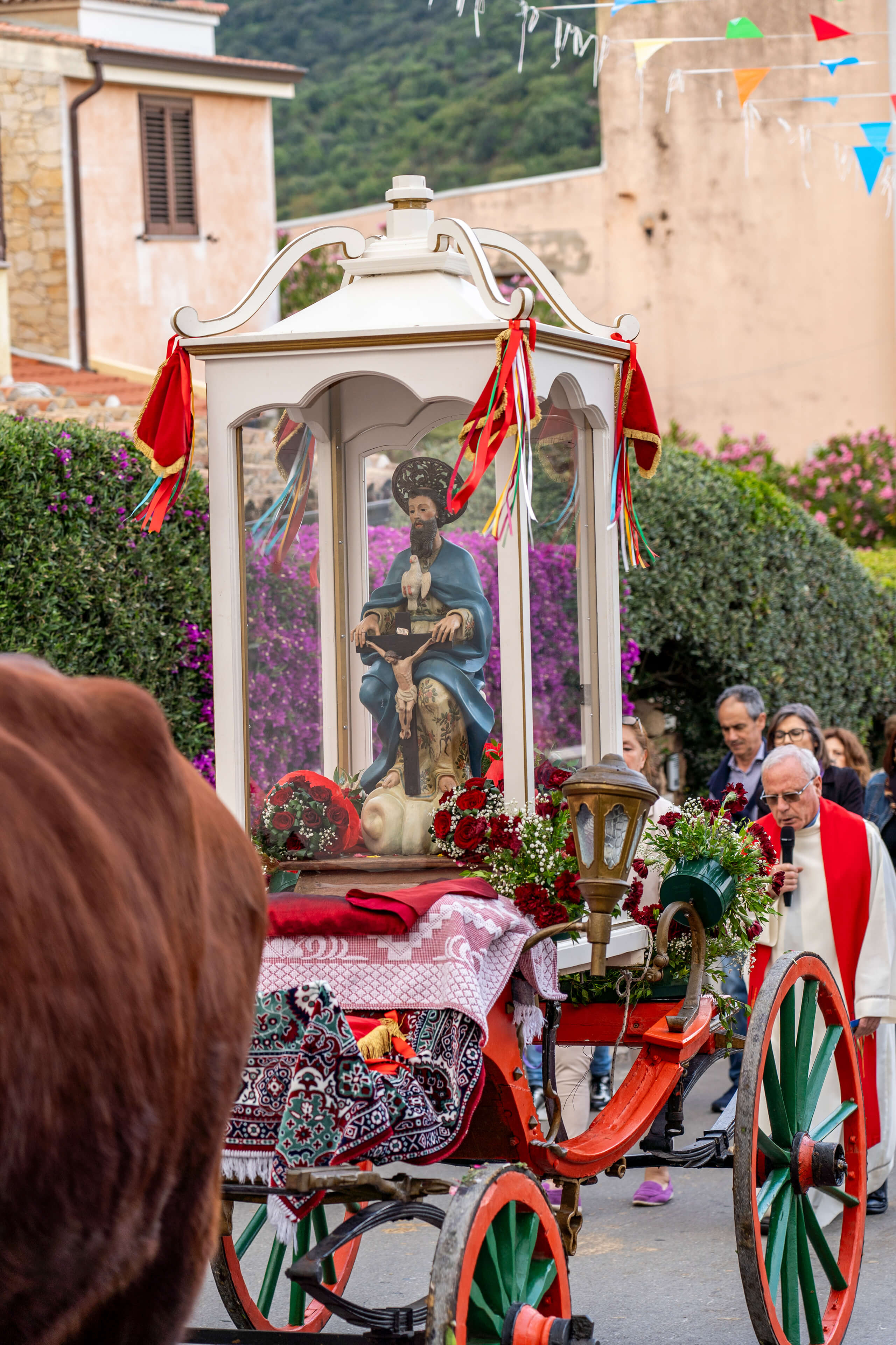 Al termine di questa ha inizio la processione sacra che vede il trasporto della statua della Santissima Trinità dalla chiesa parrocchiale del paese, dedicata alla Madonna del Rosario, a quella cinquecentesca dello Spirito Santo situata nella frazione di Chia.