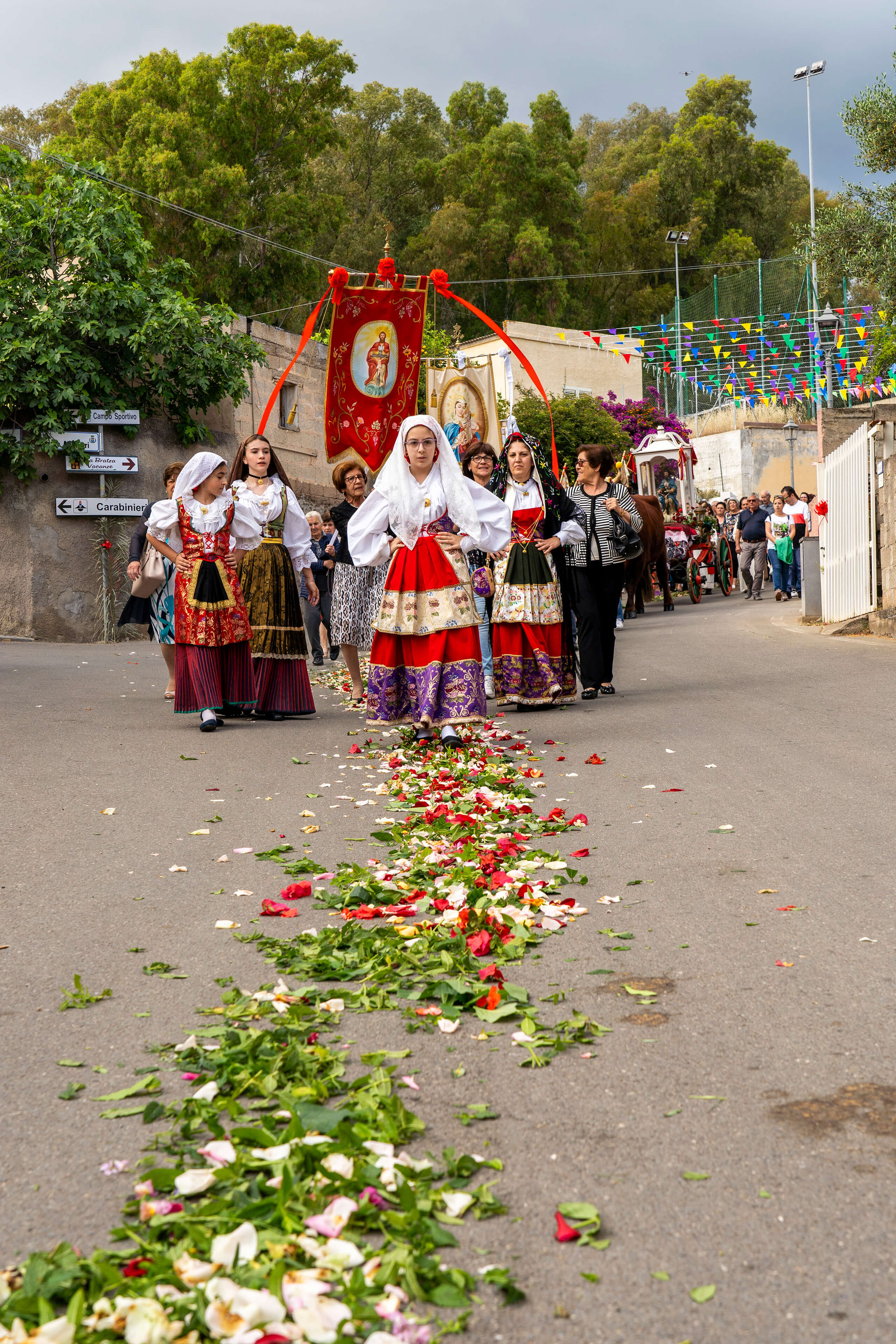 Le strade dove si attende il passaggio del simulacro vengono precedentemente ricoperte da “s’arramadura” che consiste nel creare un tappeto floreale sul manto stradale con petali di fiori, mirto, lentisco, lavanda, alloro, salvia, cisto, elicriso, ginepro, ginestra, timo, olivastro che regalano colori e profumi a chi assiste e partecipa alla processione. Tutto il percorso è arricchito inoltre dal suono delle launeddas, un antichissimo strumento musicale sardo realizzato con tre canne.