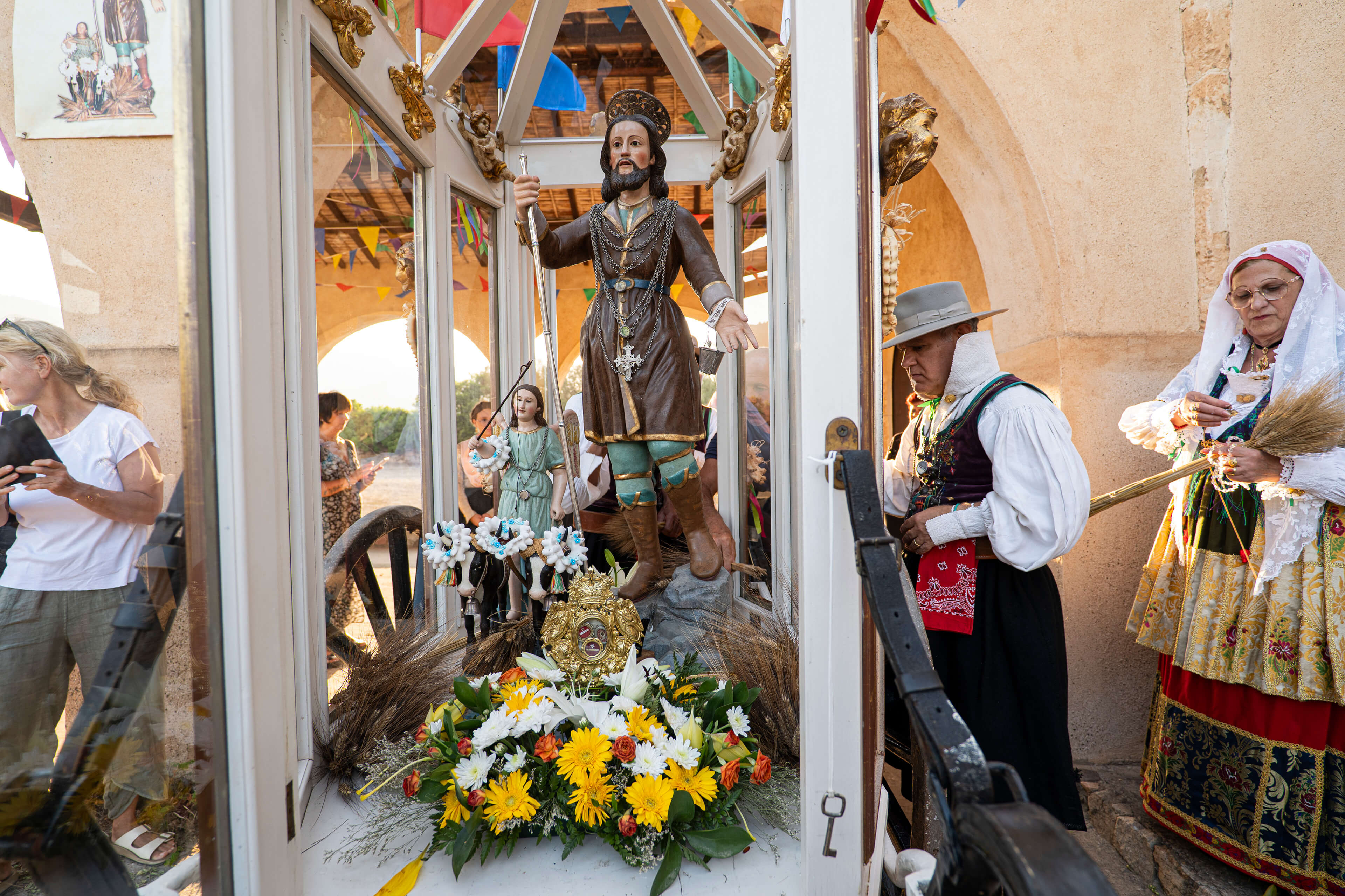 Ci si invocava a lui dunque per propiziare un abbondante e fertile raccolto, secondo una tradizione religiosa molto consolidata in Europa già prima dell’avvento del Cristianesimo. La sua devozione è così sentita a Teulada e nei dintorni che a lui vengono dedicate ben due feste: a maggio per propiziare acqua, pascoli e vino, a settembre per ringraziarlo del raccolto.