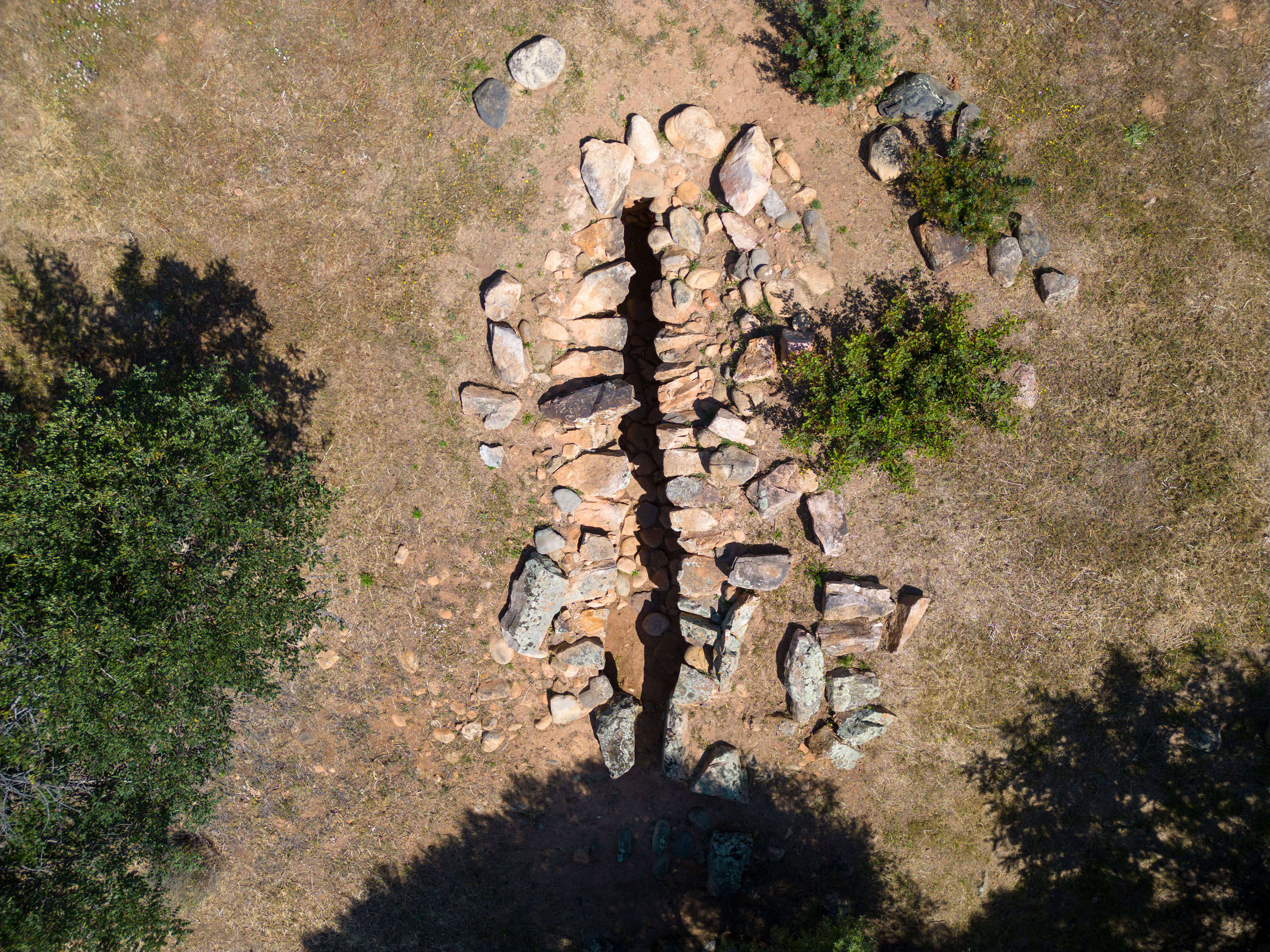 Il pavimento è stato realizzato con un ciottolato di pietre granitiche di medie dimensioni arrotondate dall’acqua mentre le pareti, che tendono a chiudersi man mano che si va verso l’alto, sono costituite da filari di ciottoli fluviali per quasi tutta la loro altezza, ad eccezione della parte sommitale dove hanno impiegato delle lastre di granito scolpite dall’uomo. Ha una lunghezza totale del corpo interno di m. 7,65 e si segnala il blocco affiancato allo stipite destro, ancora incastrato nella struttura. Nella parete laterale sinistra, è presente una nicchia rettangolare, realizzata con blocchi che si differenziano da quelli delle pareti per l’accuratezza (quello superiore funge da architrave). È profonda cm 72, alta cm 41 e larga cm 53.